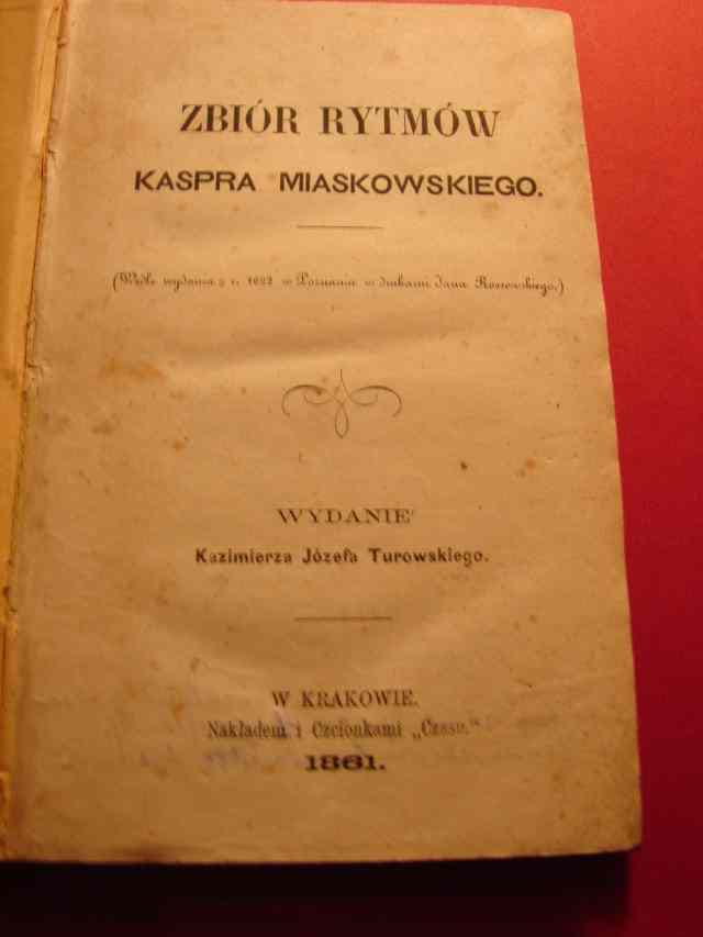 MIASKOWSKI Kasper: Zbiór rytmów. Wydanie Kazimierza Józefa Turowskiego. - Kraków, 1861.- 307, [5] s.