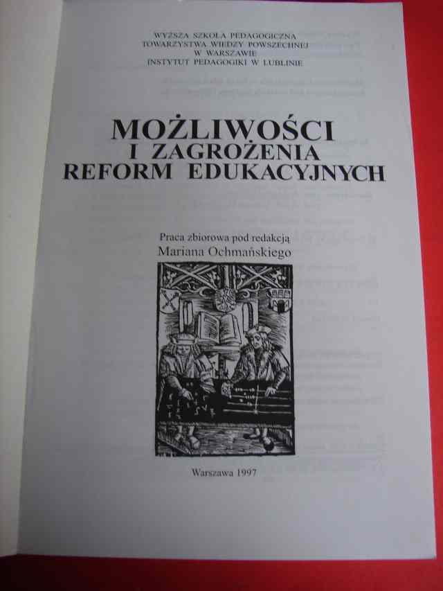 MOŻLIWOŚCI I ZAGROŻENIA REFORM EDUKACYJNYCH. Praca zbiorowa pod redakcją Mariana Ochmańskiego.- Warszawa, 1997.- 311, [1] s.- Okładki wydawnicze, broszurowe. Stan b. dobry.