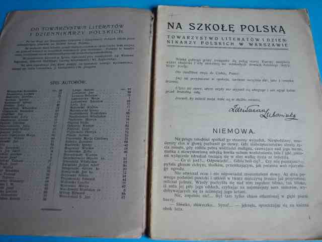NA SZKOŁĘ POLSKĄ. Towarzystwo Literatów i Dziennikarzy Polskich w Warszawie.- Warszawa, 1916.- 90 s. + reklamy.- Okładki broszurowe, wydawnicze, podniszczone.
