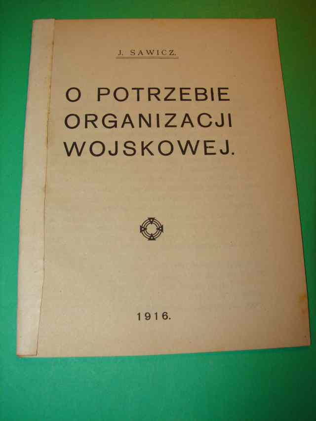 SAWICZ J. [pseudonim ?]: O potrzebie organizacji wojskowej.- Brak miejsca wydania, 1916.- 24 s.- Brak okładek. Stan ogólny b. dobry.