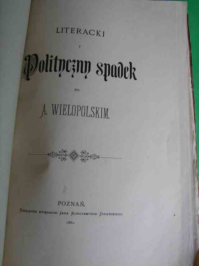 SPASOWICZ W.: Literacki i polityczny spadek po A. Wielopolskim. 1880.