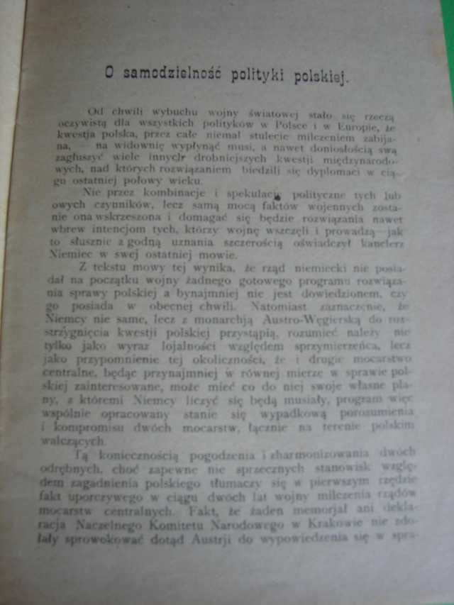 Głos w sprawie szans na niepodległość Polski w związku z wojną światową.