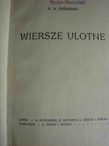 ŚRENIAWA A.N.: Wiersze ulotne. - Lwów, ok. 1918 ?.- 147 s.- Opr. pł. stan ogólny dobry.