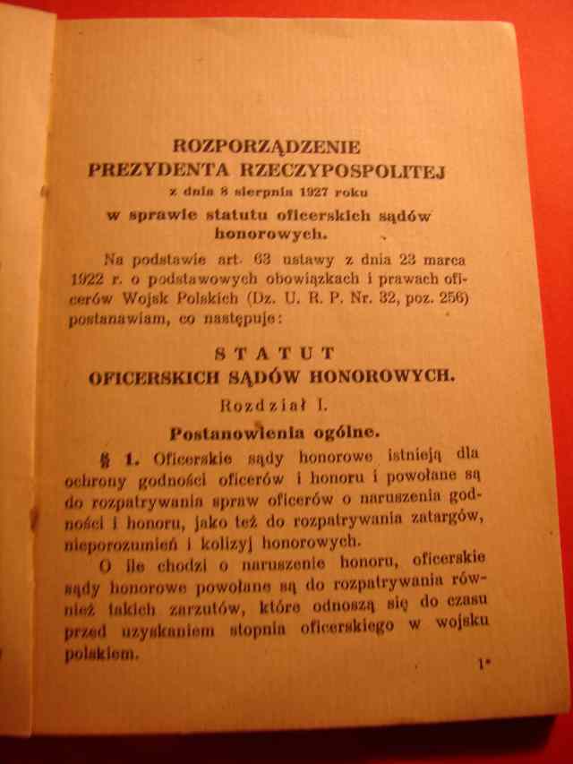 STATUT OFICERSKICH SĄDÓW HONOROWYCH. 1927.