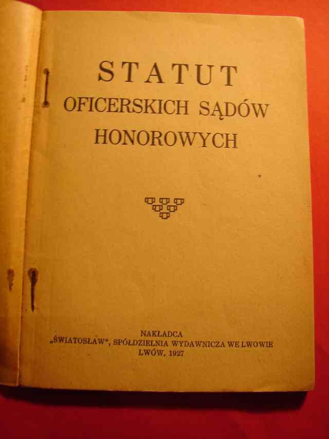 STATUT OFICERSKICH SĄDÓW HONOROWYCH.- Warszawa, 1927.- 56 s.- Okładki wydawnicze, broszurowe. Stan całości dobry.
