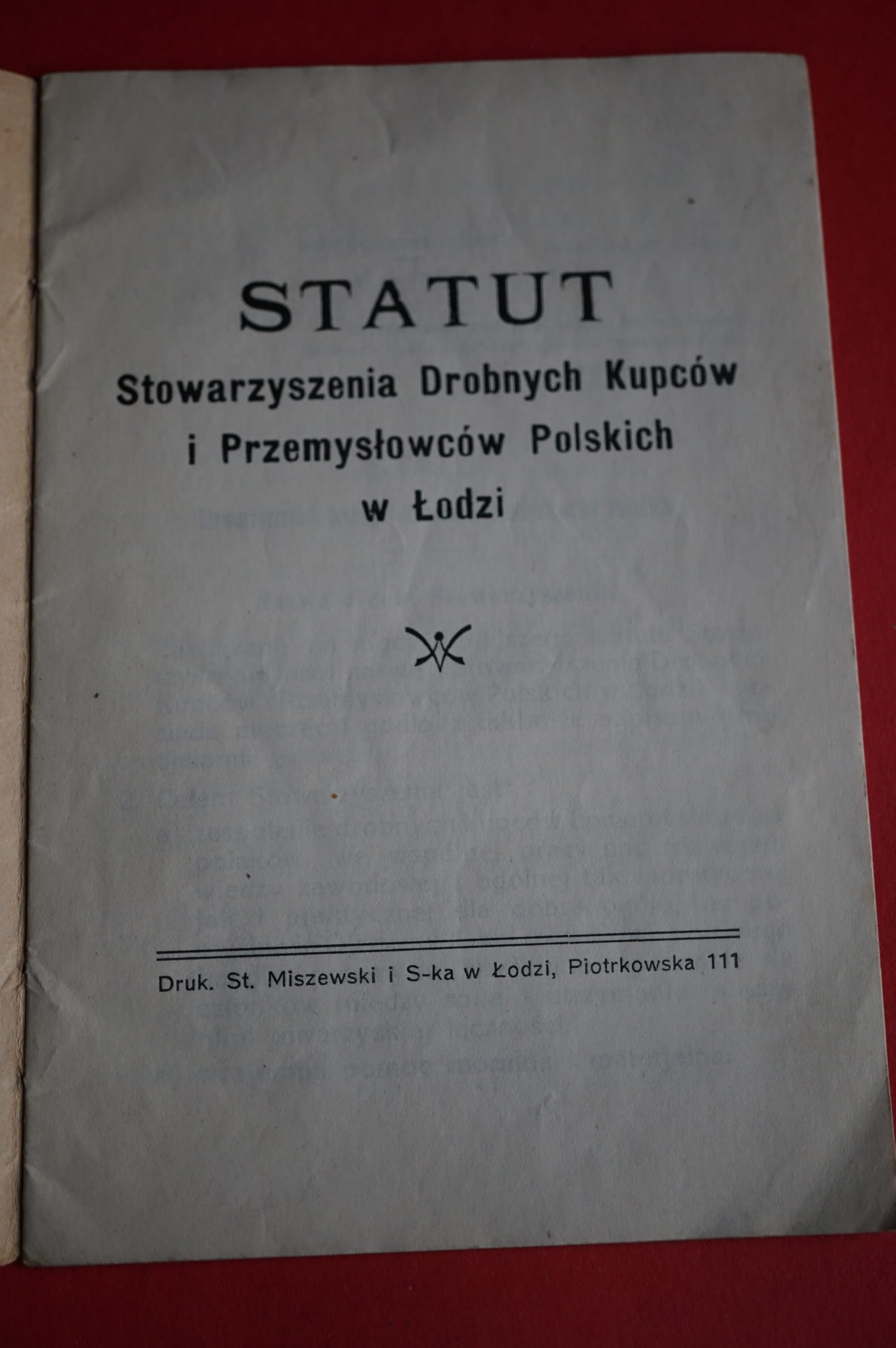 STATUT Stowarzyszenia Drobnych Kupców i przemysłowców Polskich w Łodzi.- Łódź, 1920.- 13 s.- Okładki wydawnicze, broszurowe, lekko podniszczone. Karty w stanie dobrym. Format 16,5x11 cm.