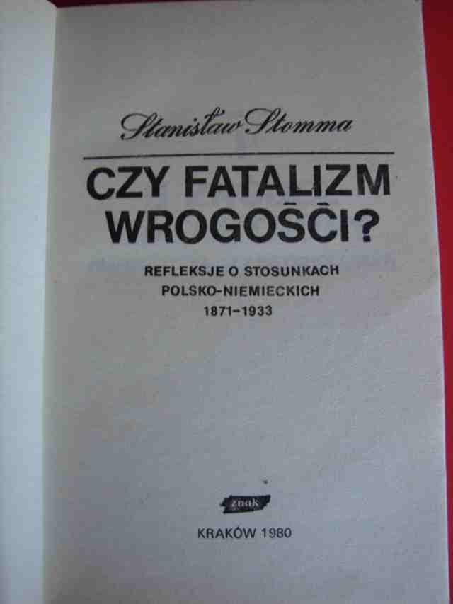 STOMMA Stanisław: Czy fatalizm wrogości ? Refleksje o stosunkach polsko - niemieckich 1871 - 1933.- Kraków, 1980.- 177 s.- Okł. brosz. wyd., stan b. dobry.