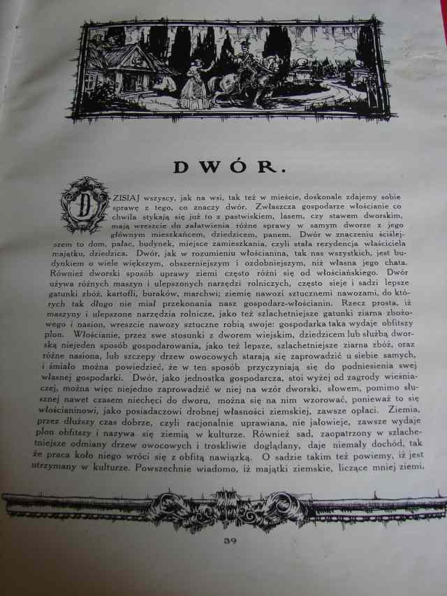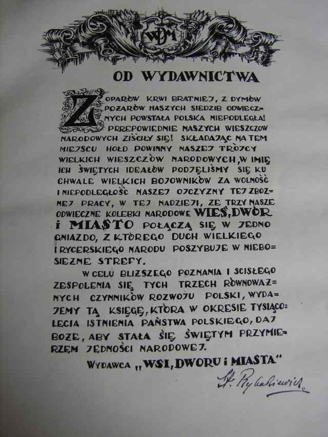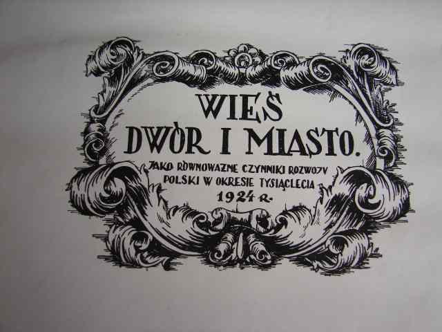 WIEŚ DWÓR I MIASTO jako równoważne czynniki rozwoju Polski w okresie tysiąclecia.- Warszawa, 1924.- 112 s., il.- Oprawa płótno miejscami odbarwiona. Blok w stanie dobrym, niewielkie miejscowe zabrudzenia i pofałdowanie kart na skutek wilgoci.