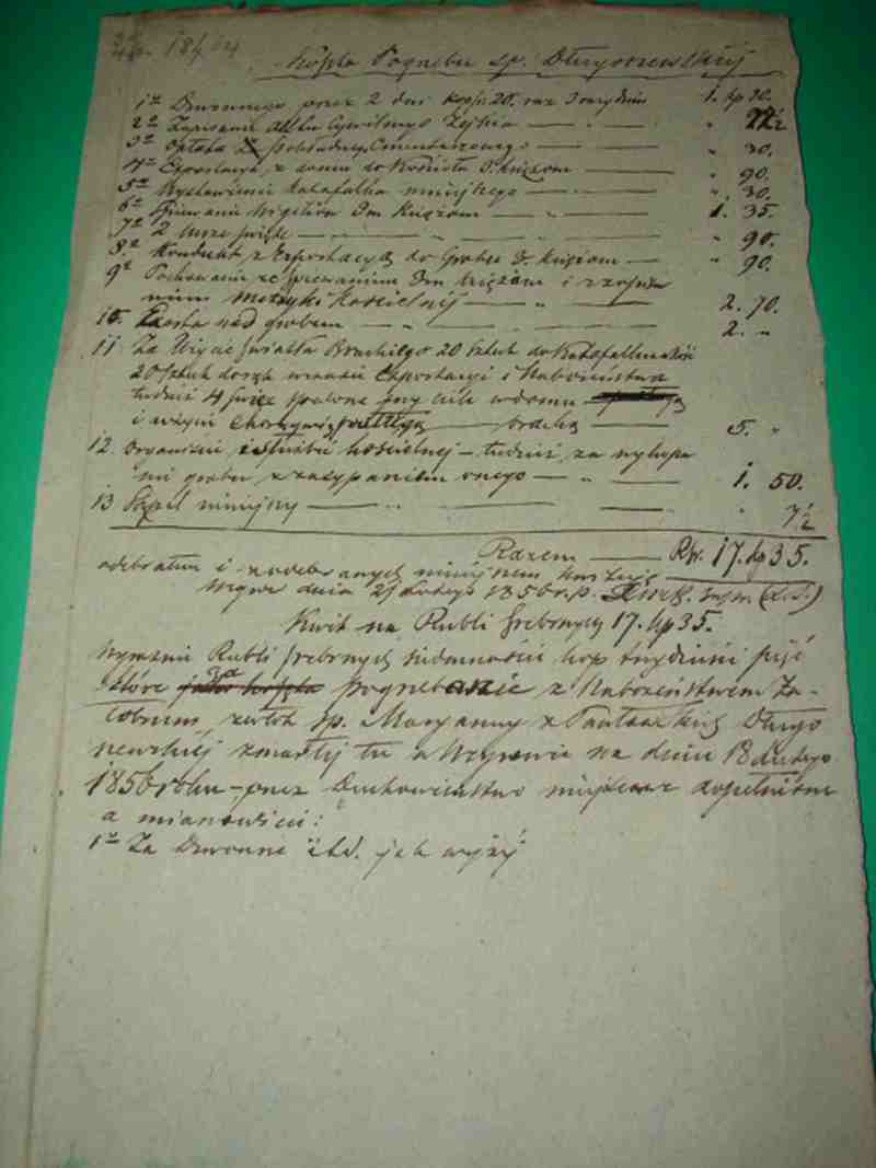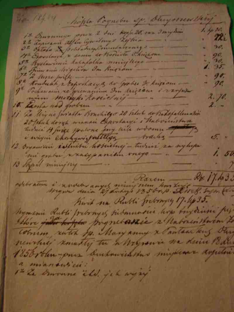 WYLICZENIE KOSZTÓW POGRZEBU 1856