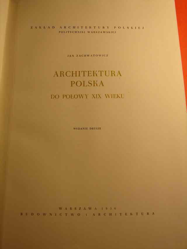 ZACHWATOWICZ J.: Architektura polska do połowy XIX wieku. 1956.